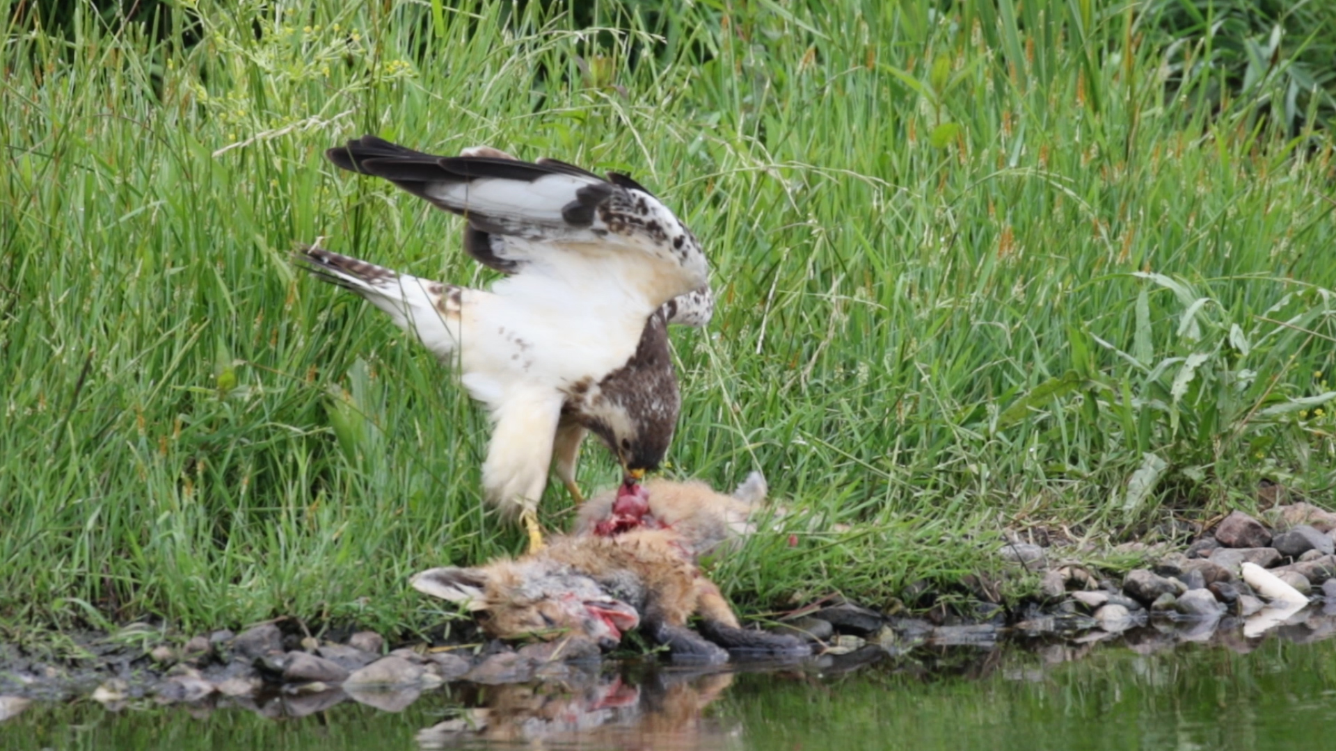 Mäusebussard aus dem Erdversteck von Ranger Fred Bollmann beobachtet.