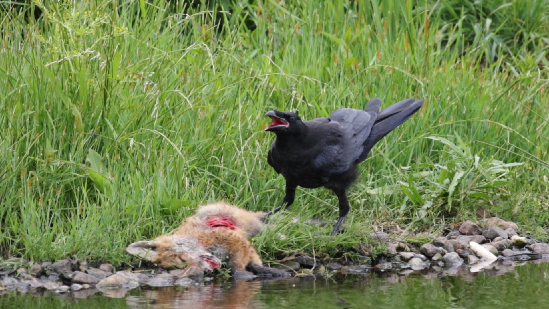 Kolkrabe aus dem Erdversteck von Ranger Fred Bollmann beobachtet.