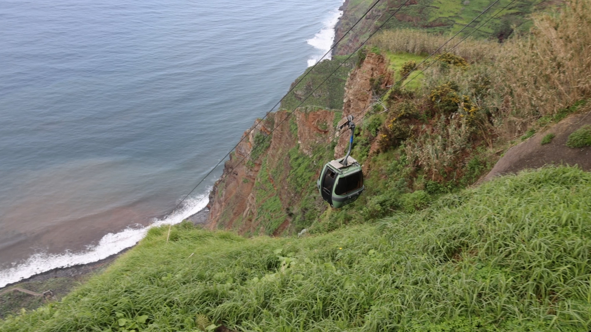 Hier am Miradouro do Teleférico das Achadas da Cruz gibt es eine kleine Seilbahn. Wir haben es leider nicht geschafft, damit nach unten zu fahren.