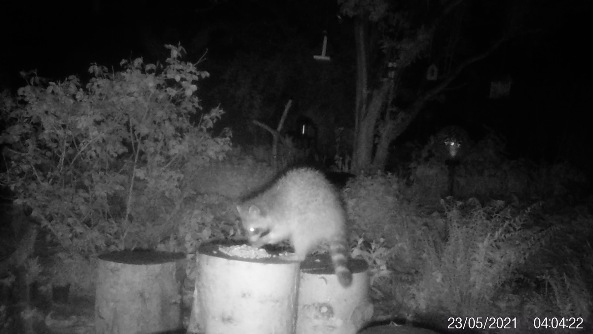 Letzte Nacht kam der Waschbär erst sehr spät zum Futterplatz.