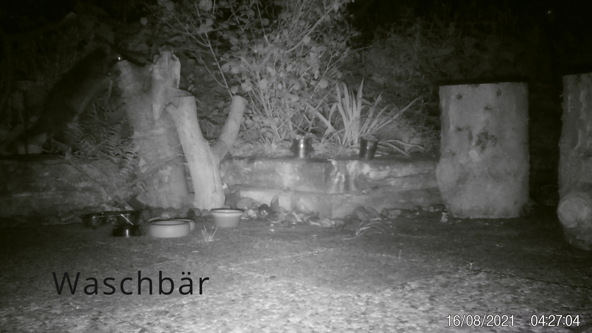 Ich hatte für die Igel die Wildtierkamera aufgestellt und habe den Waschbären entdeckt.