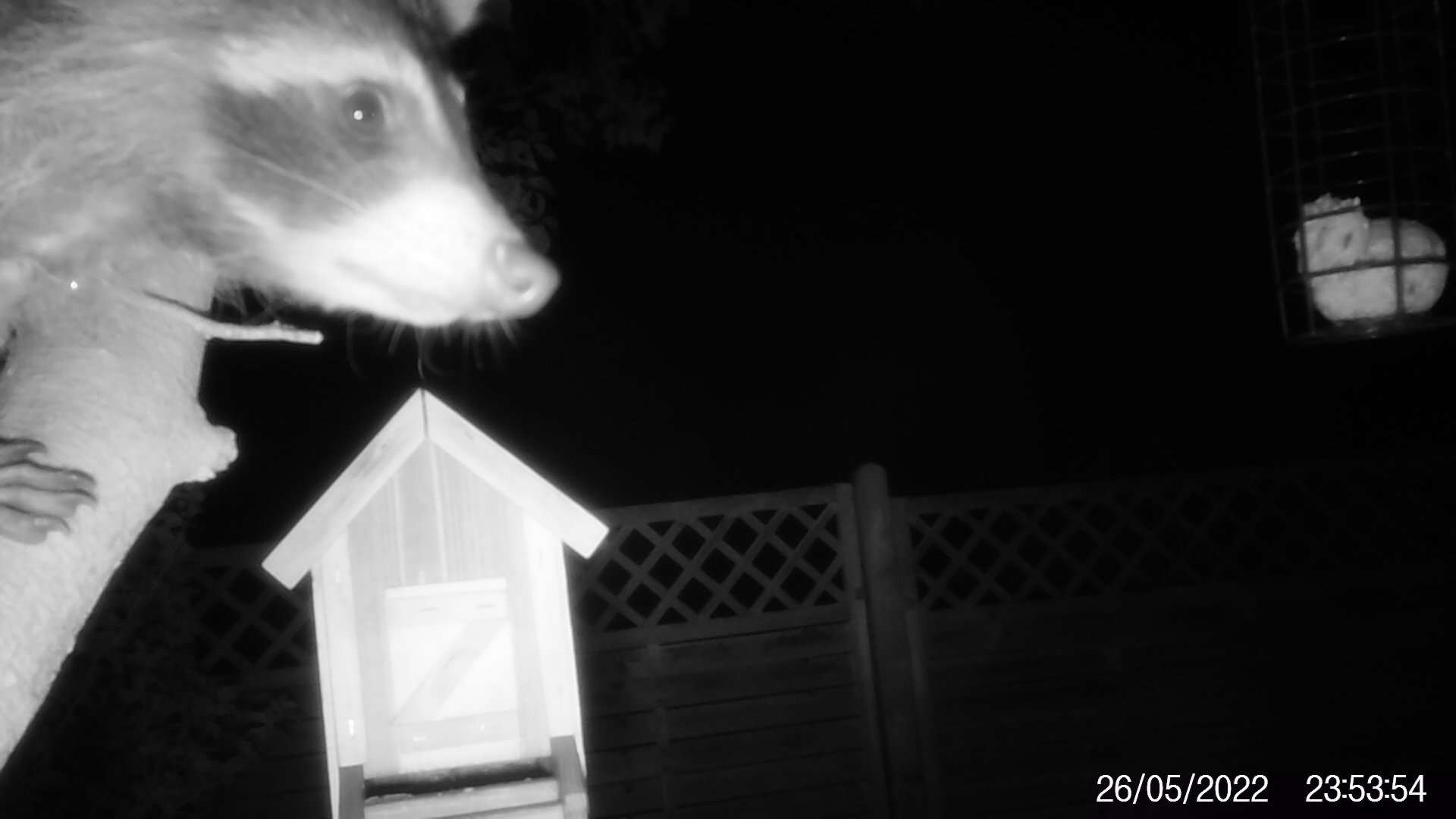 Wieder streift der Waschbär in der Nacht durch den Garten. Er ist schlau und weiß sich zu helfen. ![]()