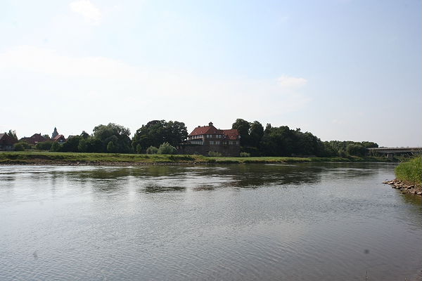 Wir fuhren zunächst nach Petershagen. Dort gibt es ein altes Schloss, hübsch an der Weser gelegen. Wir machten eine Pause, denn ich brauchte einen Cappuccino.