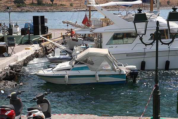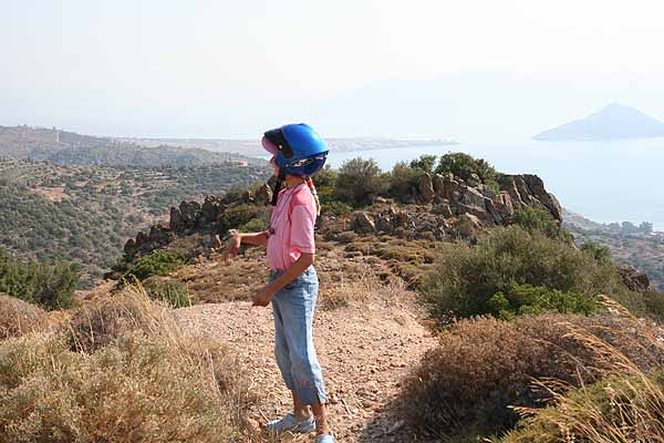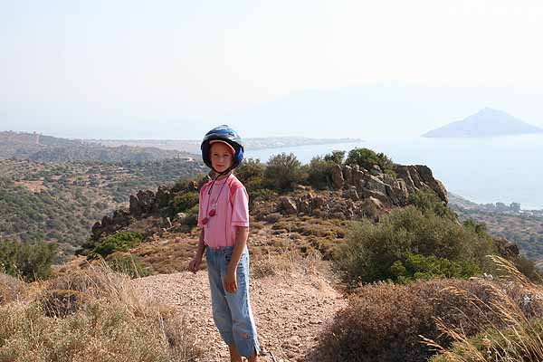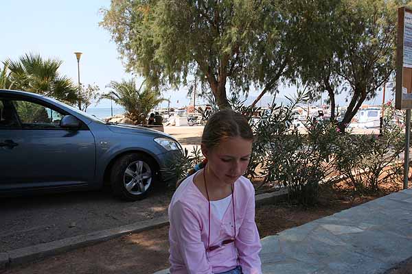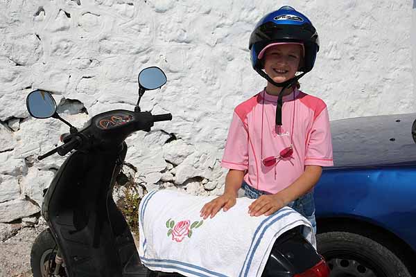 Als wir in Ägina-Stadt wie gewohnt das Motorrad aufbocken wollten, stieß Oma sich an ihrer schlimmen Stelle am Schienbein an meiner Fußraste, die nicht eingeklappt war. ![]()