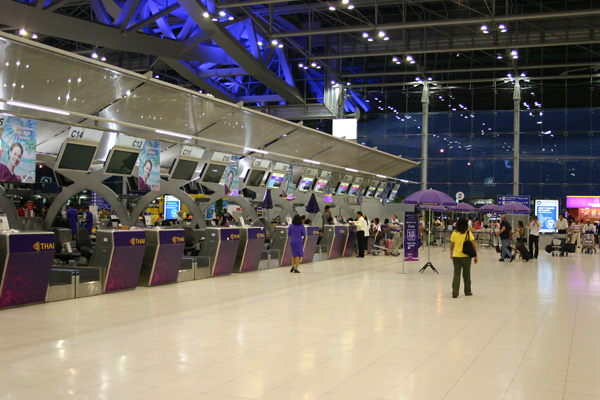 Igitt – um 4.30 heißt es wecken – durch geschlafen haben wir letzte Nacht nicht, aber doch eine Menge Schlaf bekommen. Obwohl es eigentlich erst ab 6 Uhr Frühstück im Hotel gibt, hatte man uns zugesagt etwas einfaches auch vorher für uns zu machen. Das klappt dann auch pünktlich wie bestellt um 4.50 Uhr. Wir sind nicht die Einzigen. Es gibt eine Tasse Nescaffe zum Tote erwecken, 2 Scheiben Toast, eine gebratenes Ei, eine Scheibe gekochter Schinken, Butter und Marmelade, Was will man mehr. Da Okke sein eigenes Brot mit hat, gibt es für Jan und mich sogar drei Scheiben Toast. Okke tritt an uns Ei und Schinken und wir an ihn Butter und Marmelade ab. Um 5.30 steht das Taxi vor der Tür und 10-15 Minuten später sind wir am Flughafen. Der neue Flughafen von Bangkok ist wirklich riesig – aber für Spotter (das sind Leute, deren Hobby es ist Flugzeuge zu fotografieren) schlecht. Es gibt kaum Möglichkeiten zu fotografieren und alles verteilt sich auf verschiedene Arme des Gebäudes.