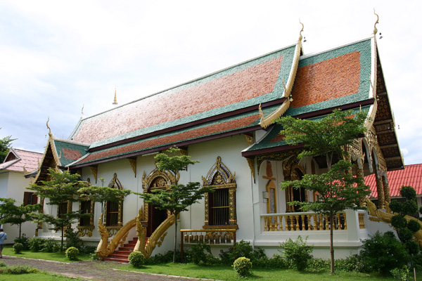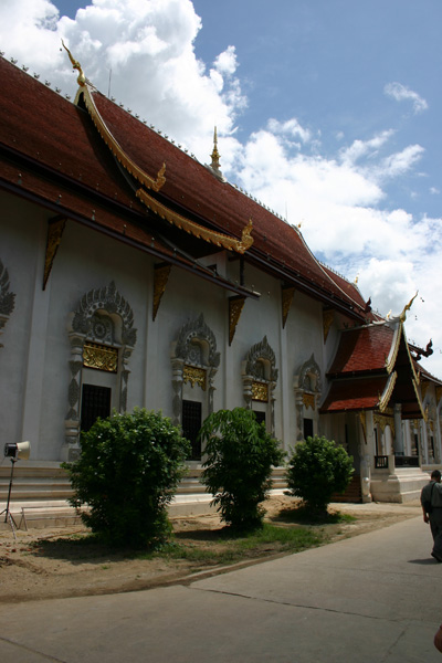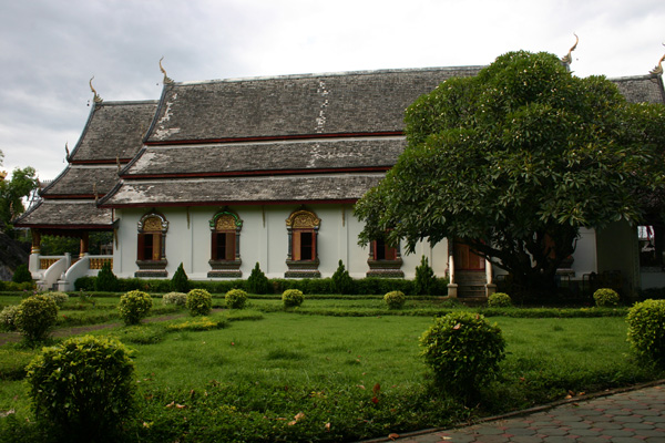 Als weiteres großes Gebäude befindet sich auf der Anlage ein großer Viharn mit einem dreifach gestaffelten gedeckten Dach. Ein Viharn ist die gemeinsame Versammlungshalle der Ordensmitglieder, also der Mönche, und der Gläubigen. Auf der Anlage leben offensichtlich sehr viele Mönche und ein besonders bedeutsamer scheint gerade gestorben zu sein, denn sein Bildnis findet sich überall und im Wat selber sitzt er in Form einer Figur, von der man im ersten Moment nicht weiß, ob sie lebt oder nicht.