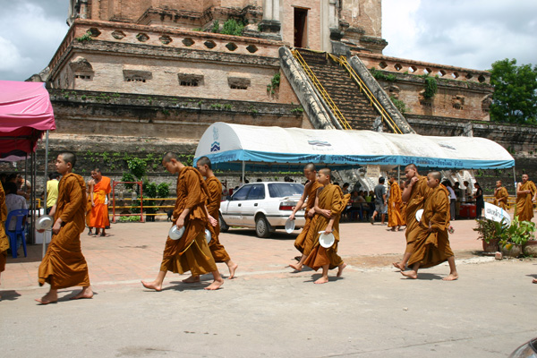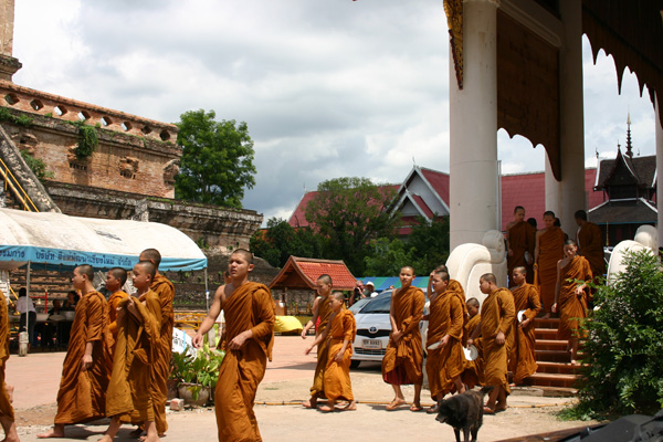 Jetzt geht die „Watwanderung“ am Wat Lam Chang vorbei, und von dort entlang der Ratchawithi Road, vorbei am Wat Dok Eung, Richtung Stadtgraben. Durch das Tha Pae Gate geht es dann in unser Hotel.Erst einmal sind wir ko. Schließlich begann unser Tag heute um 4.30und jetzt ist es 15.00 Uhr. Das bedeutet Mittagsschlaf.