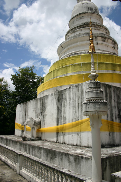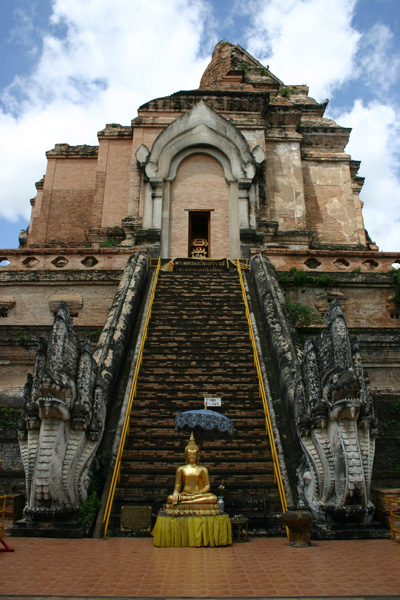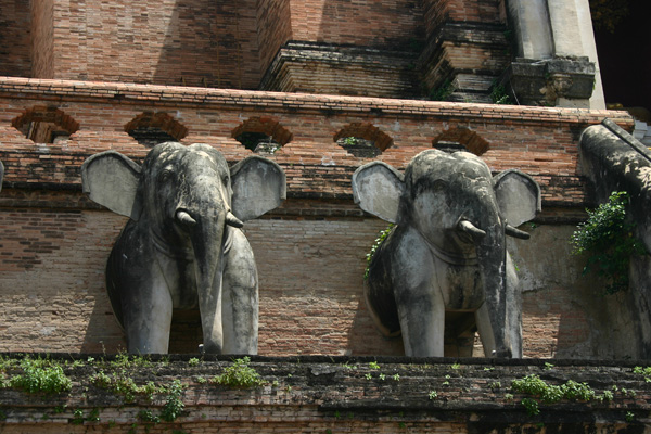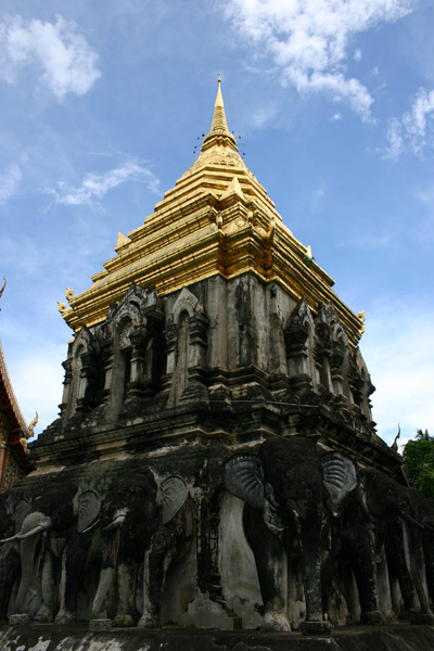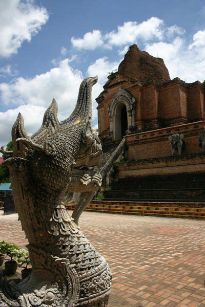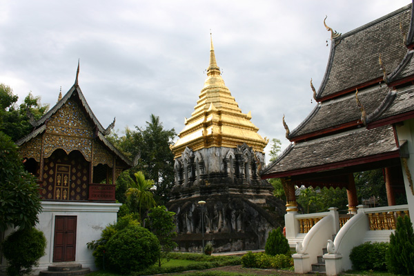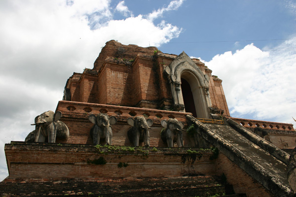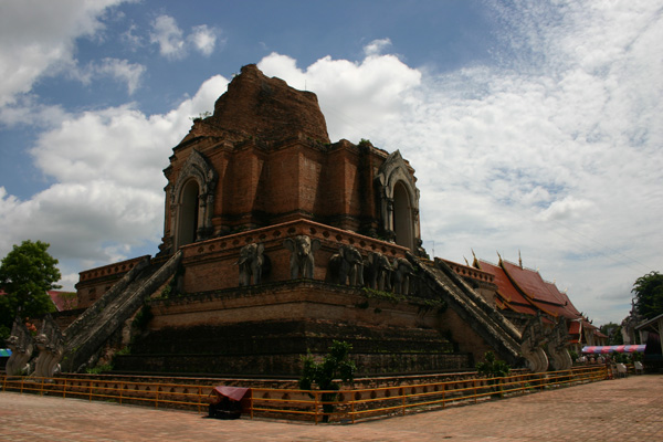 Der älteste Teil der Anlage ist ein bei einem Erdbeben 1545 eingestürzter Chedi aus Ziegelsteinen der wohl mal 90 m hoch gewesen sein soll. An einigen Terrassen stehen noch Elefanten und in den Nischen sitzen Buddhafiguren. Dort soll auch mal der jetzt in einem Wat in Bangkok befindliche Smaragd-Buddha gestanden haben.