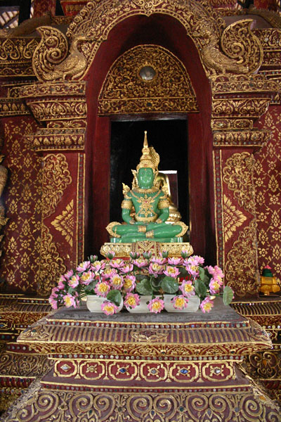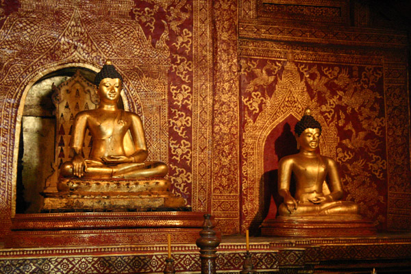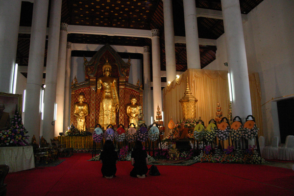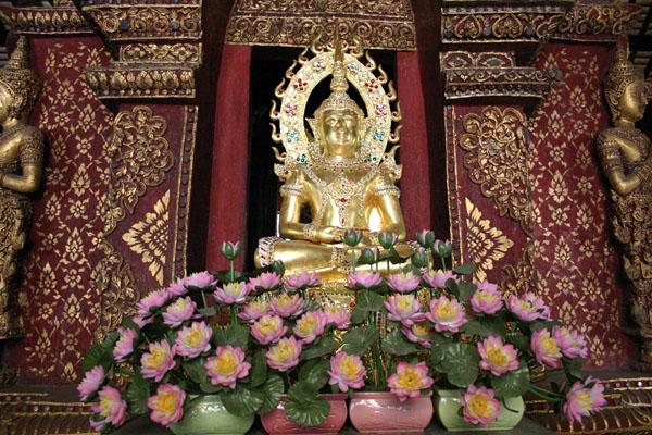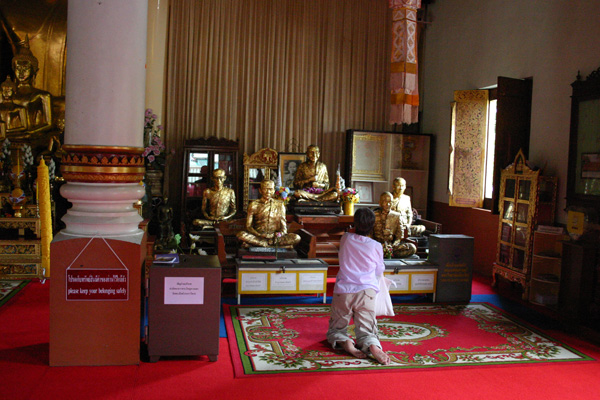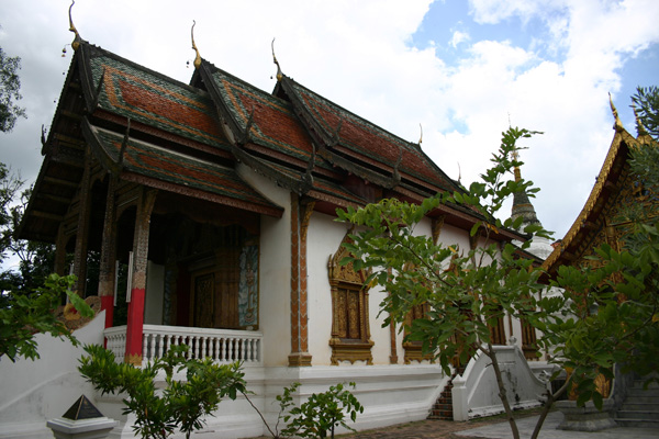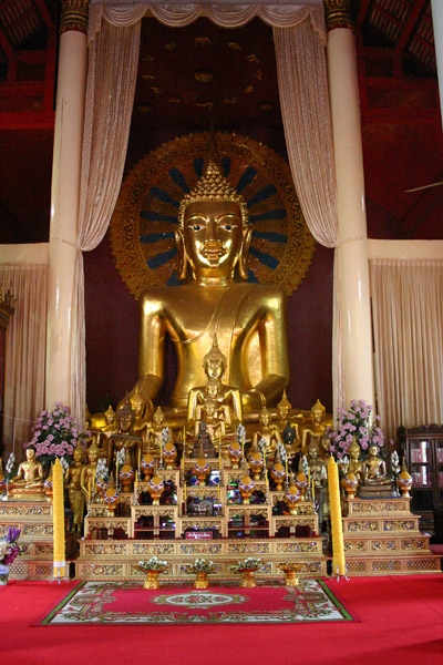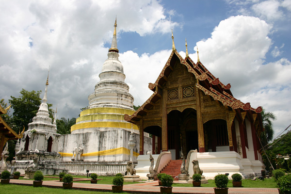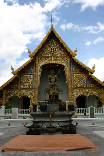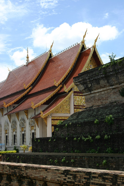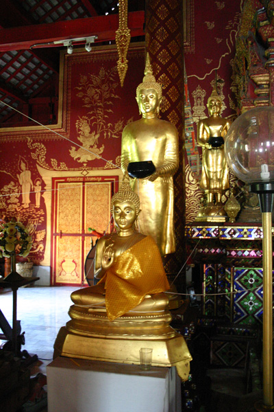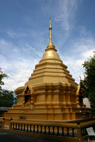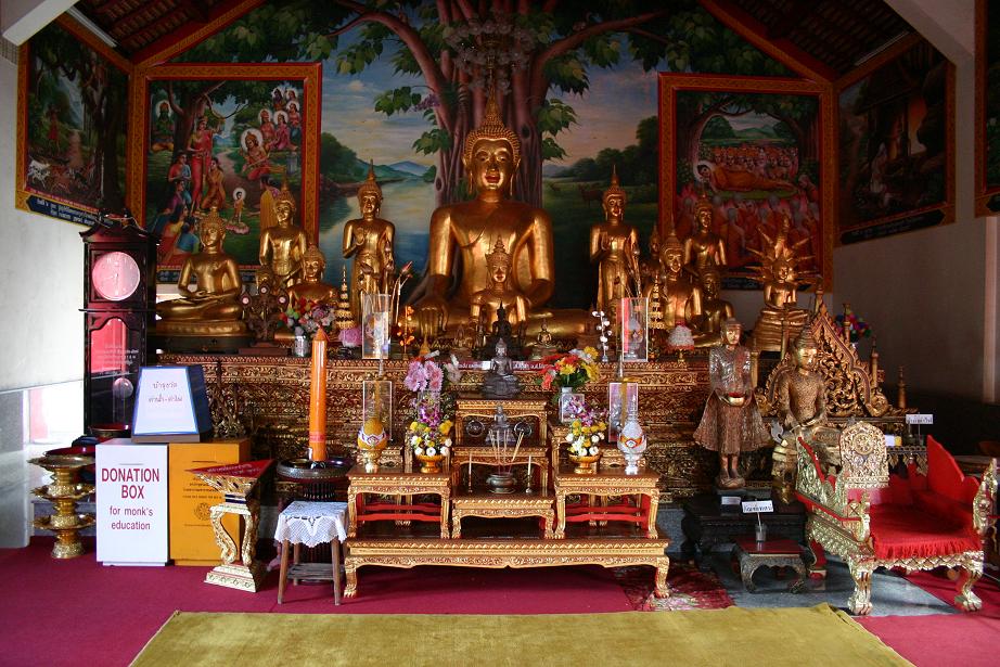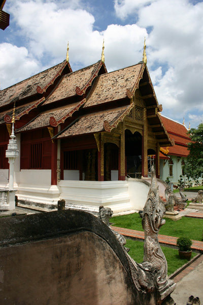 Als nächste wandern wir zum Wat Phra Singh. Das soll der bedeutendste und größte Wat Chiang Mais sein. Er wurde 1345 von König Pa Yo angelegt. Die Asche von dessen Vater ist in einem der Chedi beigesetzt.