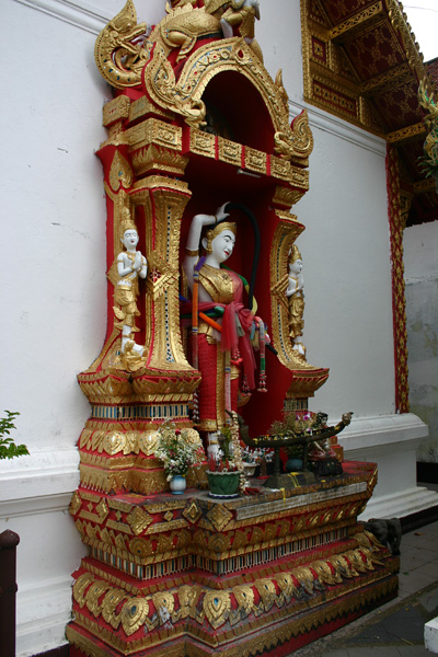 Der Name soll auf den Mönch Vasuthep zurückgehen, der auf dem Berg in einer Eremitage gelebt haben soll. Der König Kua wollte einen Platz für eine besondere Relique haben und ein anderer Mönch schlug die Eremitage des Vasuthep vor. So wurde die Relique in einen kleinen Altar eingeschlossen und ein weißer Elefant musste den Berg mit dem Altar auf dem Rücken hoch laufen. Das war dann so anstrengend, dass der sich oben hinlegte und verstarb. Und an der Stelle wurde der Tempel errichtet. Gut, das wir den größten Teil des Weges mit dem Auto fahren konnten.