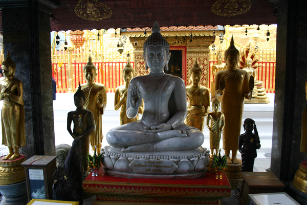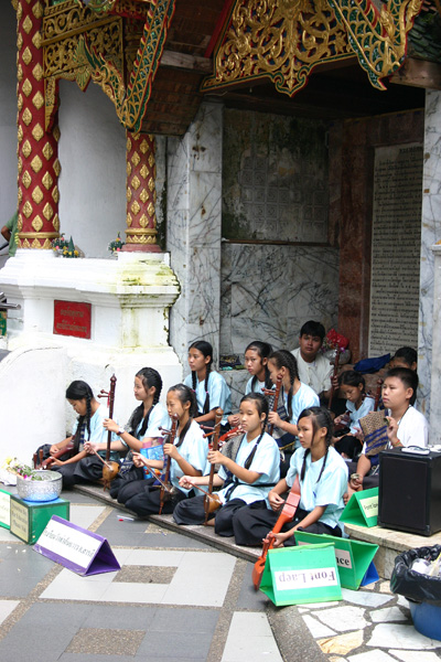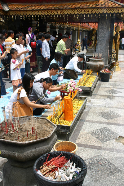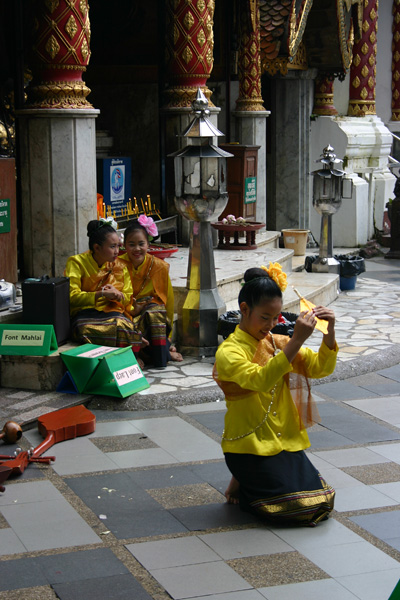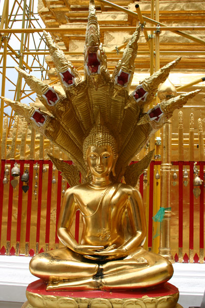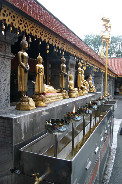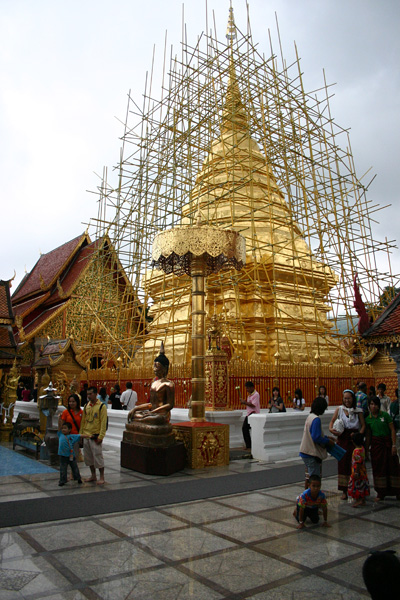 Auf der Tempelanlage tummeln sich die Touristen,, aber auch viele Thais, in Massen. Die Tempelanlage hat einen äußeren Kreis und einen inneren Bereich. Vom äußeren Bereich hat man den Blick auf Chiang Mai. Den inneren Bereich darf man wieder nur barfüßig betreten.