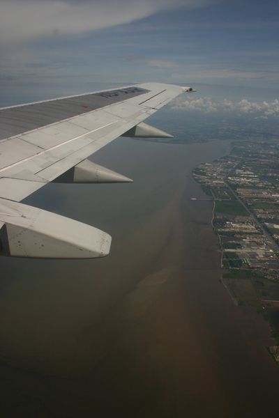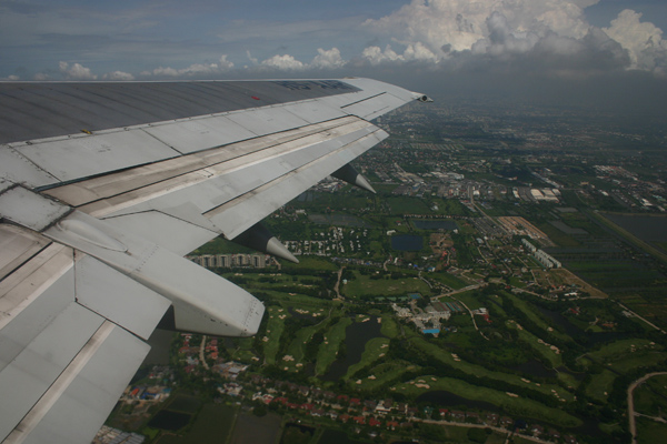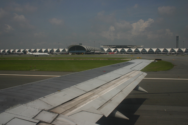 Der Flug verläuft planmäßig, ruhig und schnell wie auf dem Hinweg. Nur landen wir diesmal auf dem alten Flughafen, der eigentlich schon längst hätte geschlossen sein sollen. Aber wegen Problemen beim Neubau ist er eben noch nicht ganz zu. Und er ist ziemlich weit vom neuen Flughafen entfernt. Wir haben das gleiche Hotel in der Nähe des neuen Flughafens gebucht wie in der ersten Nacht, weil wir morgen früh von dort aus hoffentlich weiter in den Süden fliegen. Schließlich finden wir ein Taxis, das uns zum Hotel für 600 Baht bringt und wir sind tatsächlich fast 1 Stunde unterwegs.