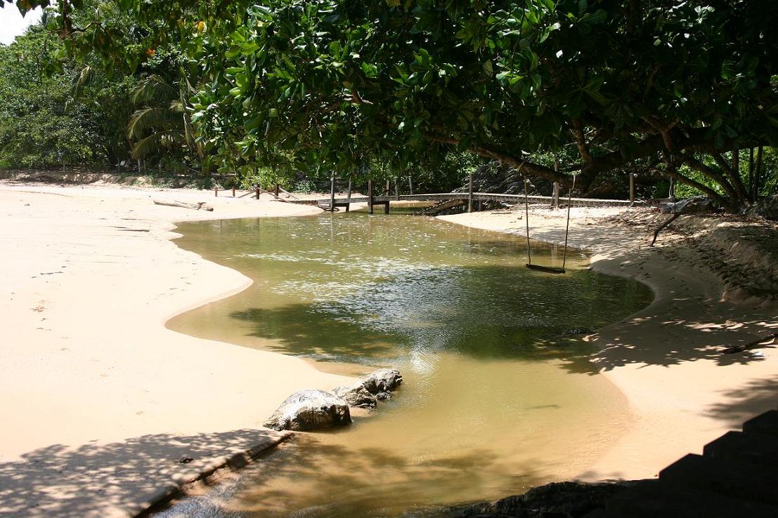 Wir kommen zu Nr. 8 – hier gibt es hinter dem Strand überall große überdachte Stände mit Massagematten. Und viele bieten auch Stühle etc. am Strand an – Kundenbindung nennt man das. Die Stühle sind wirklich kostenlos. Außerdem bekommen wir einen Korb mit Bananen und Ananas hingestellt. Später auch einen Kaffee – alles Service. So sitzen wir den ganzen Tag unter einem riesigen Geigenbaum, eine Ficus Benjamini Art – die mit den geigenkörperförmigen Blättern - im Schatten. Herrlich! Zwischendurch gehen wir immer wieder schwimmen, eine Runde den Strand lang, Schwimmen – und freuen uns des Lebens. Jan und ich gönnen uns für je 250 Baht (runtergehandelt von 300) eine Ölmassage – 1 Stunde absolutes Wohlgefühl. Wir lesen, würfeln, schwimmen.