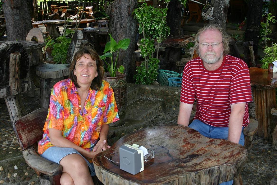 Um 18.00 Uhr gehen Okke und ich wieder zur Internetstelle und diesmal ist dort ein sehr netter Mensch. Es klappt dann auch mit dem Internetanschluss. Mit dem eigenen Laptop kostet es 100 Baht und wir können das Internet bis um 21.30 nutzen, also 3 ½ Stunden, Sonst kostet 1 Minute 1 Baht, in der Anlage mit dem W-Lan kostet es sonst sogar 3 Baht pro Minute. Okke muss auch noch was für die Uni klären und braucht von den 3 ½ Stunden 2 1/2. Mir bleibt eine Stunde, und das reicht einfach nicht aus, um den Reisebericht in das Forum zu stellen und die verkleinerten Bilder hochzuladen, zumal die Verbindung unterbrochen wird, ich neu hochladen muss, und dann auch noch Daten von meinem USB-Stick verschwunden sind. Ich denke, übermorgen gehen wir noch einmal ins Internet und dann beide gleichzeitig. 100 Baht sind 2 Euro, kostet also auch nicht die Welt, und dann ist es entspannter für alle. -