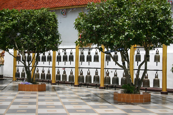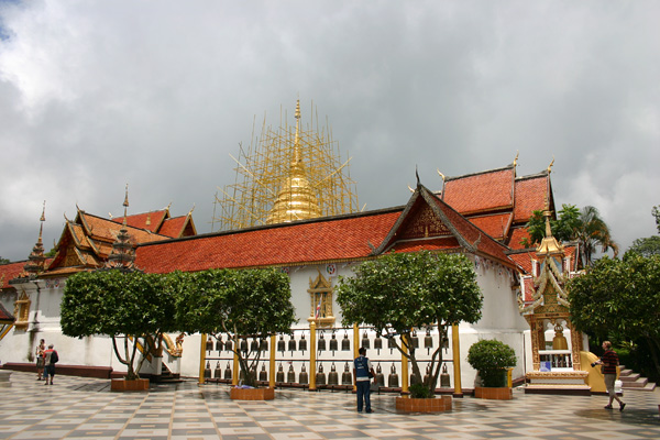 Auf der Tempelanlage tummeln sich die Touristen,, aber auch viele Thais, in Massen. Die Tempelanlage hat einen äußeren Kreis und einen inneren Bereich. Vom äußeren Bereich hat man den Blick auf Chiang Mai. Den inneren Bereich darf man wieder nur barfüßig betreten.