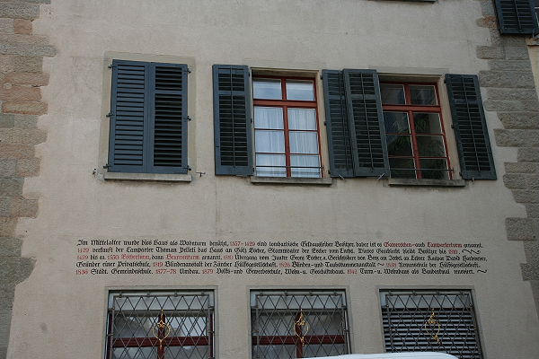 Die Schweizer haben einen - für mich - eigenwilligen Humor. An einer Außenwand sehen wir ein Gemälde hängen, daneben ein Hinweisschild mit folgender Aufschrift: (2. BIld)