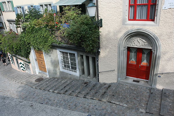 Wir laufen durch die malerischen Gassen, sehen hier ein Schild, wo Lenin gewohnt hat und da eines wo 1916 das Cabaret Voltaire eröffnet und den Dadaismus begründet hat.