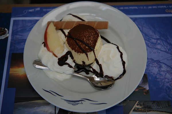 Bei einem leckeren Essen genossen wir die Fahrt.