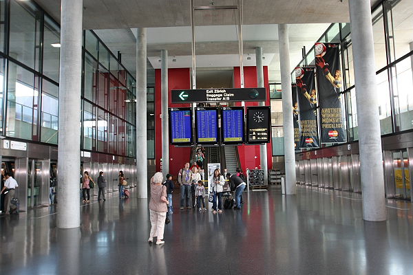 Im Bahnhof nehmen wir den Zug zurück zum Flughafen.