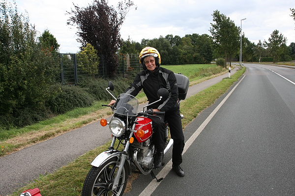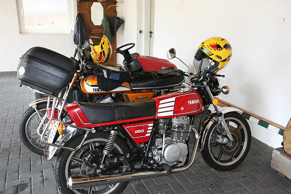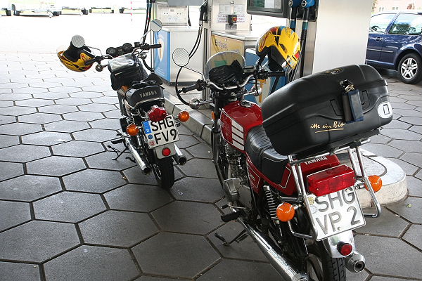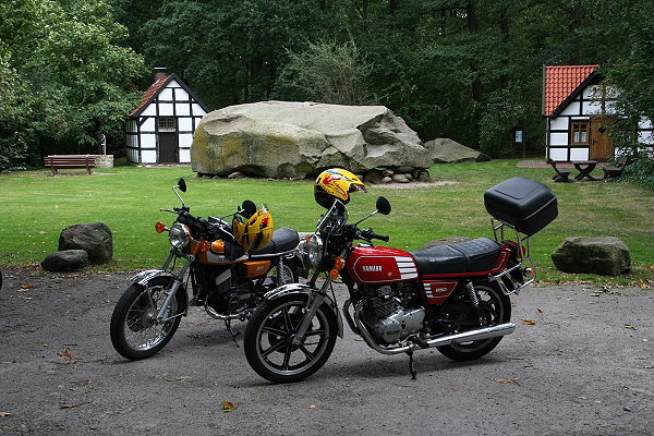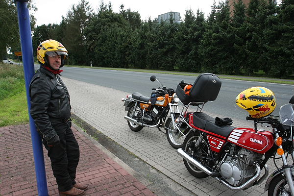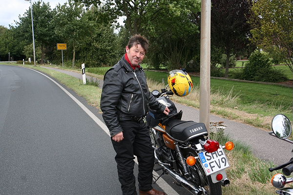 Das Wetter an diesem Wochenende war einfach schön, so beschlossen wir am Sonntag, den 08. September, eine kleine Motorradausfahrt. Friedrich machte die beiden kleinen Maschinen fertig, für mich die Yamaha XS 250 und er wollte die RD 250 fahren, die die immer eine große Auspuffwolke hinter sich lässt . :°