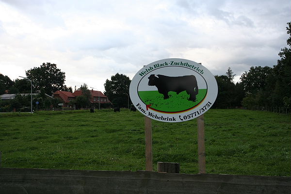Die Tankstelle auf der anderen Straßenseite der Mühle ist verziert mit nachgebauten Mühlen und gegebüber befindet sich ein Zuchtbetrieb von Welsh Black Kühen. Niedlich sind die ganz kleinen Kälber, die teilweise fast im Gras verschwinden.