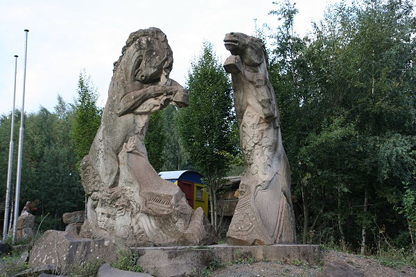 Nach der Skulptur FRÜHLING IN NIEDERSACHSEN, die von dem Bildhauer Ostap Rebmann aus Wunstorf geschaffen wurde, erreichen wir den Streichel-Zoo.