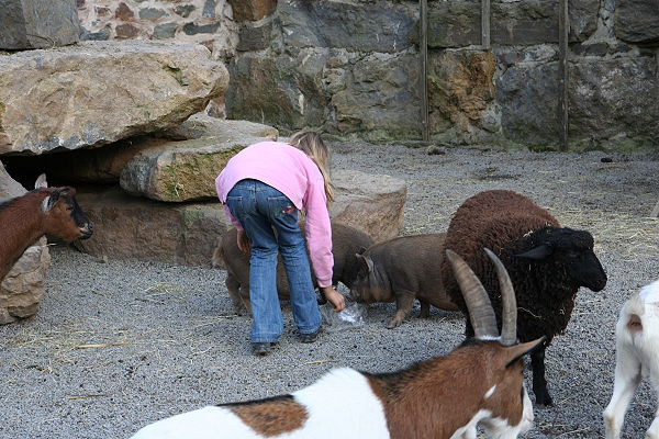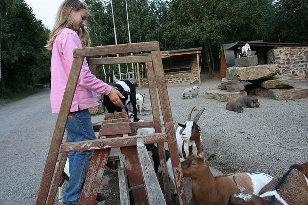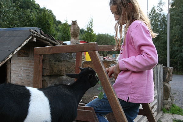 Allerdings wird diese auch von den Ziegen benutzt, um schneller bei den Besuchern zu sein, denn diese bringen zarte Birkenblätter oder Ziegenfutter, das man an der Kasse kaufen kann, mit.