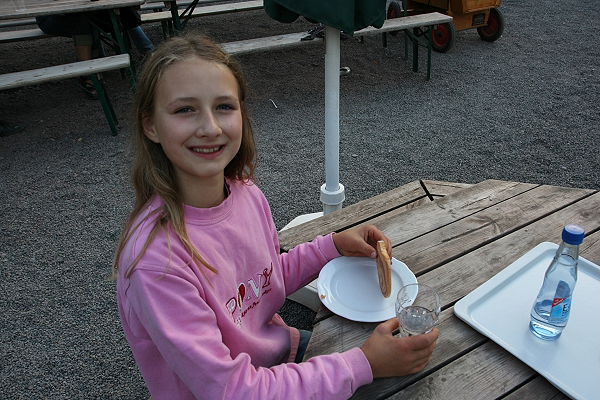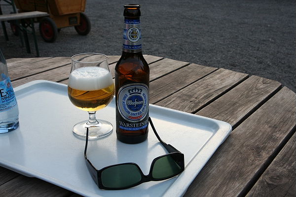 Es geht weiter, Zen-Garten und Haus der Religionen lassen wir aus, denn wir haben Hunger und Durst. Im Bistro bekommen wir einen Kuchen und eine Portion Pommes mit Mayonnaise, dazu ein Wasser für Jenni und ein alkoholfreies Bier für mich.