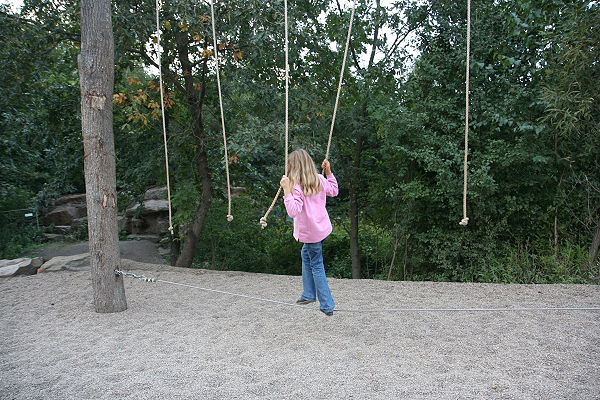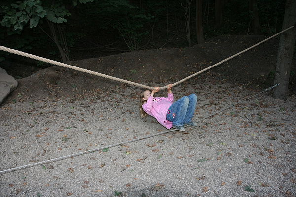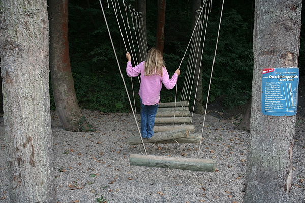 Eine Halteseilbrücke, ein Lianengang, ein Schwungseil, eine Affenschaukel und eine Bogentaubrücke mussten erkundet werden -