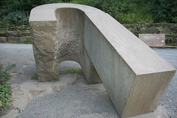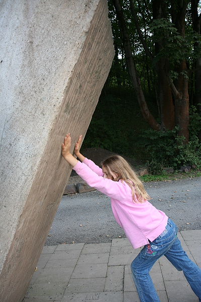 Wir kommen zum Bildhauerwerk STEINE SCHLAFEN NIE, das von dem Bildhauer Jose Vincente Gajardo aus Santiago de Chile geschaffen wurde. Jenni hatte Mühe, diesen Block fest zu halten. -