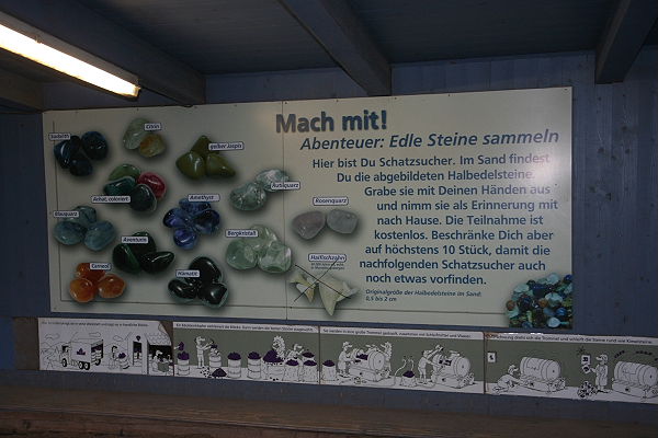 Während der Wartezeit durften die Kinder sich selber einen Button herstellen und noch einen großen Halbedelstein aussuchen, den jeder mit nach Hause nehmen durfte, auch wir Erwachsenen. -