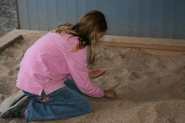 Im Sand sammelte Jenni Halbedelsteine und durfte 10 Stück davon behalten. -