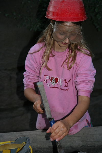 Ganz zum Schluss versuchte Jenni sich noch als Steinmetz, ich glaube, das war ganz schön schwer. Mittlerweile war die Gipsfigur getrocknet und nun mussten wir aber wirklich los.