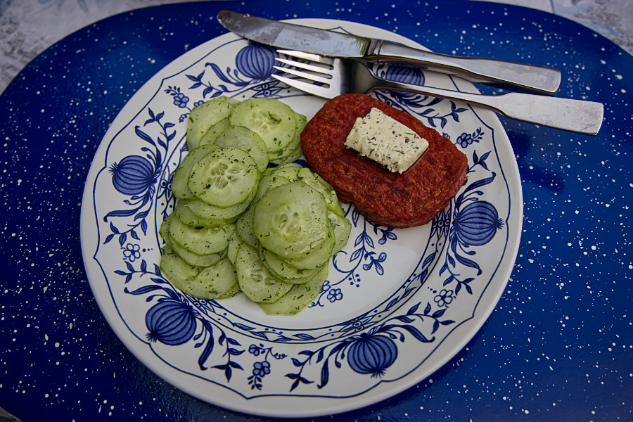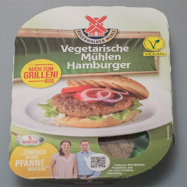 Vegetarische Mühlen Hamburger *vegan* unter anderem aus Soja und Weizengluten