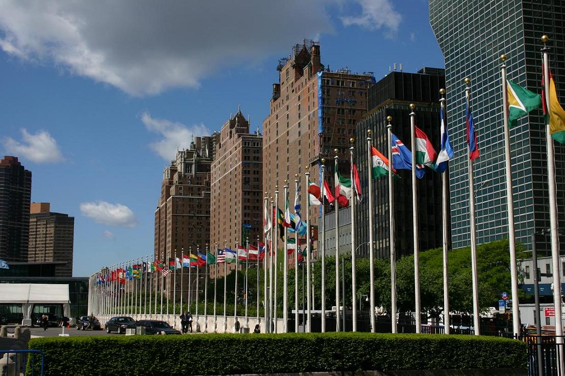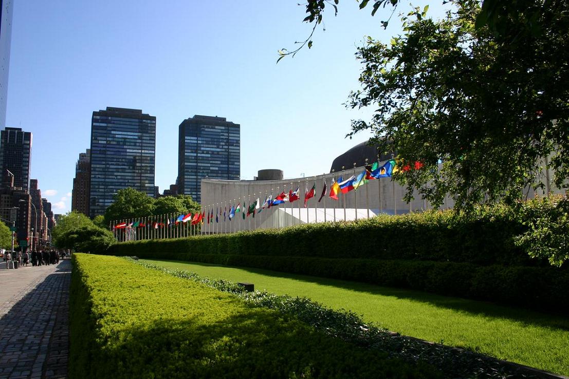 und noch mehr Vereinte Nationen - dort im Park steht sogar ein Stück Berliner Mauer