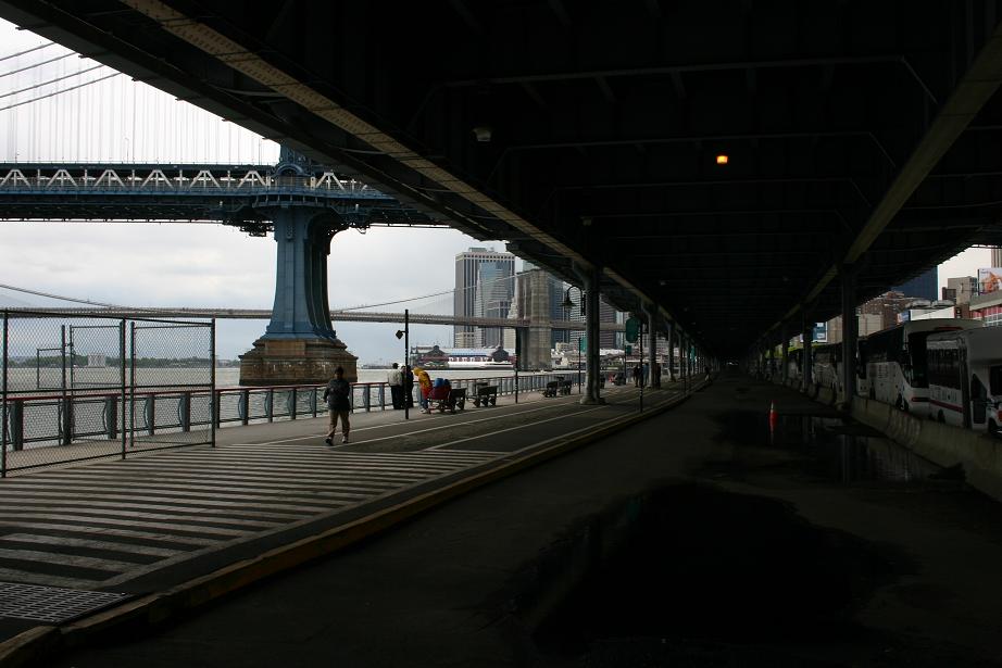 Die Canal bis zum E-Broadway und diesen bis zur Clinton. Dann zur Southstreet kurz vor der Manhattan und die South entlang, unter der Manhattan und unter der Brooklynbride am Pier 17 vorbei bis zur Wallstreet.