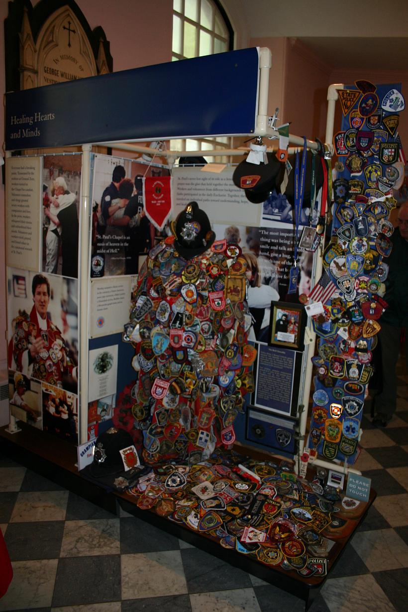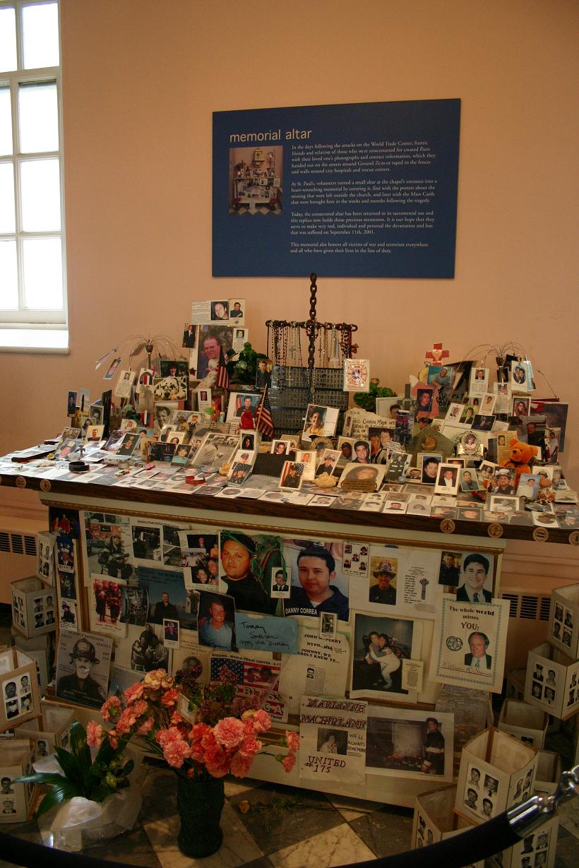 Dann gehe ich weiter den Broadway in richtung 42th, vorbei nahe ground Zero und an der St. Paul Chapel vorbei, in die ich ebenfalls einen Blick werfe. Meine Beine schmerzen schon heftig. Aber ich schaue mir auch die St. Pauls an, die einzige Kirche aus der Zeit vor den Unabhängigkeitskrieg. Dort entdecke ich, dass in der Kapelle eine Erinnerungsstätte an den 11. September 2001 eingerichtet wurde.