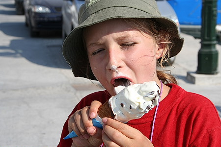 Im Sommer ist echt viel los auf dieser Insel, die Strände sind voll. Abends saßen wir noch lange gemütlich bei Panos und einem Ouzu, hmhmm lecker. Jenni hat natürlich lieber ein Eis geschleckt und Fanta getrunken.