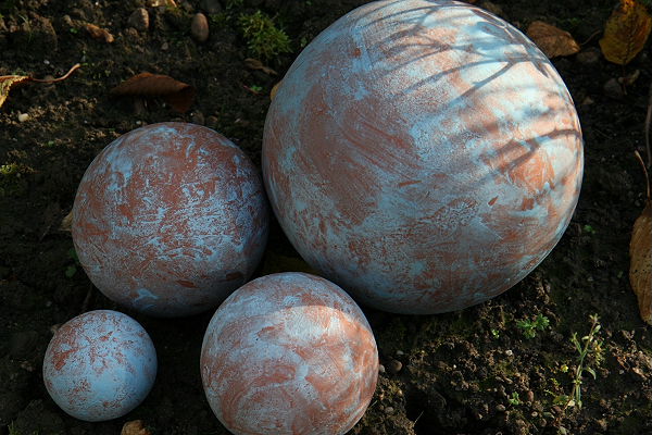 Von der letzten Ausstellung im Lauenhäger Bauernhaus habe ich mir 4 wunderschöne Keramikkugeln mitgebracht. Sie sind frostsicher, daher können sie das ganze Jahr draußen bleiben.