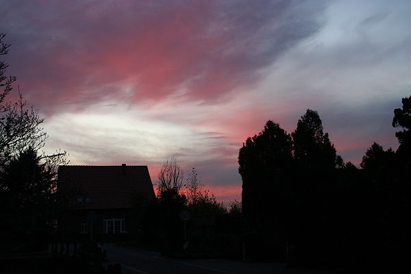 Unser japanischer Ahorn hat eine wunderschöne Farbe bekommen, dazu passend verfärbte sich der Himmel heute einfach richtig schön.