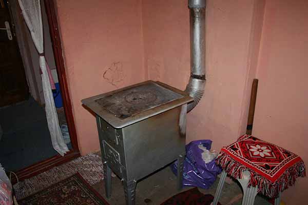 Wir kaufen ein und fahren zu der armen Familie, in diesem Zimmer leben 7 Menschen, der Ofen kann bei dieser Wetterlage nicht benutzt werden, da der Rauch reindrückt.