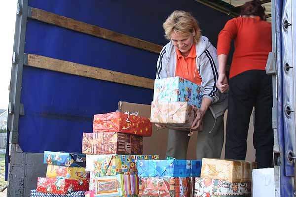 Morgen erwarten wir einen LKW mit ca. 1.000 Weihnachtspäckchen aus Gütersloh, die abgeladen werden müssen. Leider hat sich der Fahrer noch nicht gemeldet, er ist noch in Ungarn, so dass wir nicht wissen, wann er morgen kommt.