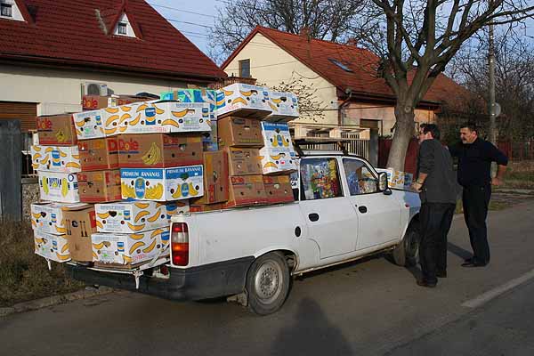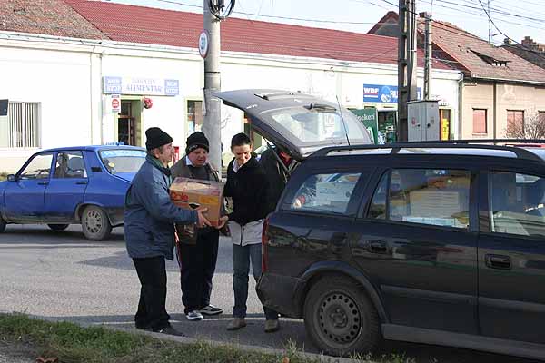 Danach brachten wir Sachen zu einer Sozialarbeiterin, fuhren nach Voiteg und weiter bis nach Brestea. Von hier aus sind es nur 15 km bis nach Serbien und auch die Karparten waren ganz nah. Brestea ist übrigens ein bulgarisches Dorf. Hier wird untereinander nur bulgarisch gesprochen. Wir besuchten auch hier eine arme Familie und brachten neben Weihnachtspäckchen auch einen Ofen mit.Von dort aus ging es wieder zurück nach Temesvar ins Elendsviertel Blascovic, dort haben wir einige Familien, die in Wellblechhütten leben, besucht und den Kindern warme Sache gegeben und Lebensmittel da gelassen. An Ort und Stelle kauften wir gleich eine Fuhre Holz, damit sie ihre Öfen heizen konnten. Dann ging es noch zu einer 12-köpfigen Familie mit ähnlichen Problemen und nun sind wir zurück, beladen mit vielen Begegnungen und Schicksalen. Wir waren auch bei einer Familie, deren Großmutter die 10 Kinder ihrer Tochter versorgt, die zur Zeit eine Strafe im Gefängnis absitzt. So lange die Tochter schwanger war, musste sie nicht ihre Haftstrafe antreten, daher die hohe Kinderzahl. Das war´s in Kürze und es ist teilweise ganz schön belastend, diese vielen in Armut lebenden Kinder zu sehen...