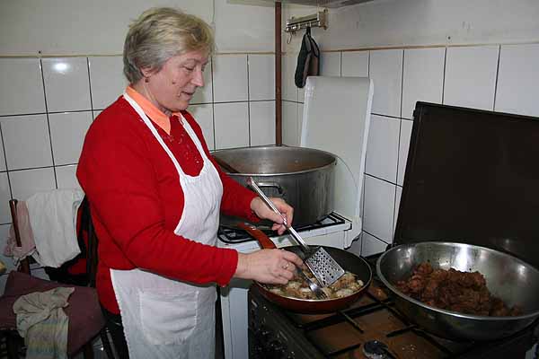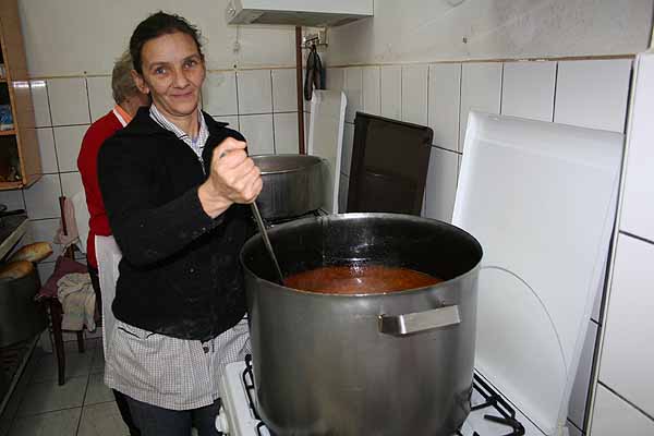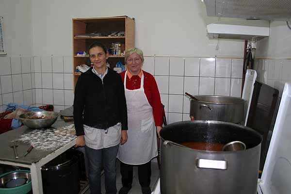 Dreimal pro Woche erhalten über 100 Bedürftige - sehr arme Familien mit Kindern, alleinstehende, alte und kranke Menschen - ein warmes Mittagessen. Hilfe für Kinder unterstützt auch hier mit Lebensmitteln. Wir haben 2 Wagenladungen mit Kleidung und auch Lebensmitteln hingebracht. Wir durften einmal in die Kochtöpfe schauen.