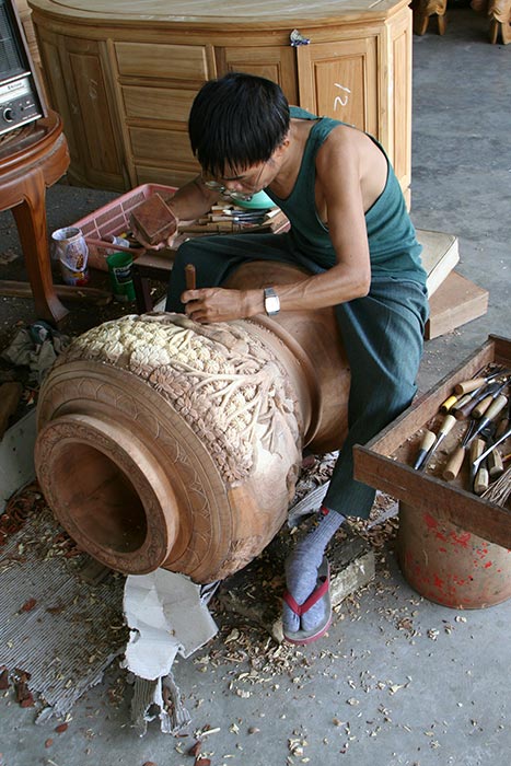 sind seid letzten Freitag in Thailand. Nach ruhigem Flug und umsteigen in Bangkok sind wir in Chiang Mai gelandet. Da wir schon oefter in Chiang Mai waren, haben wir nur die Handycraft Road besucht, wo wir schon mal vor etlichen Jahren waren. Hier kann man zusehen, wie Papierschirme, Silberwaren, Seide, Holzschnitzereien und vieles mehr hergestellt wird.