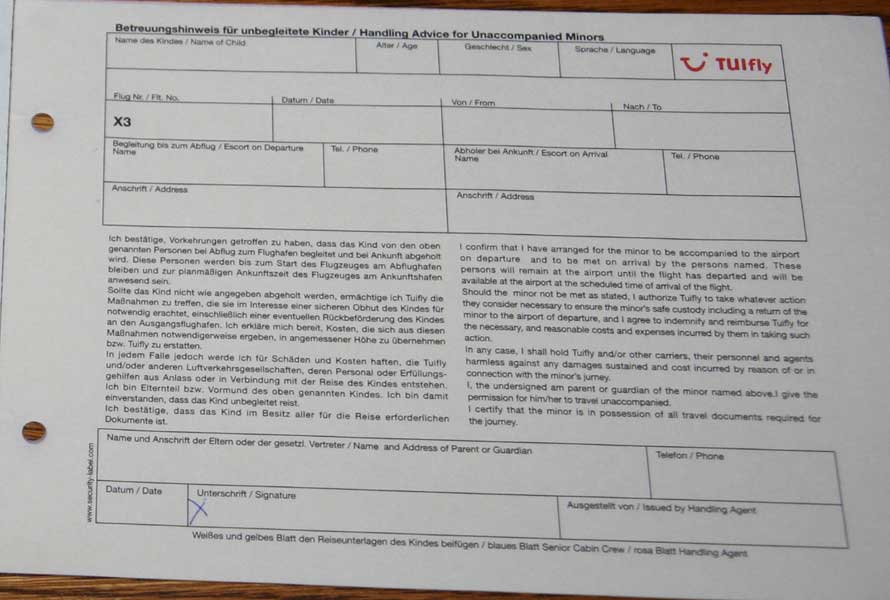 Alleinreisende Kinder bei TUIfly