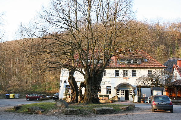 Wir trinken eine Apfelschorle. Der Wirt erzählt uns, dass in zwei Wochen hier ein Bikertreff statt findet mit großer Ausfahrt. Wir nehmen eine Broschüre mit und steigen wieder aufs Motorrad.