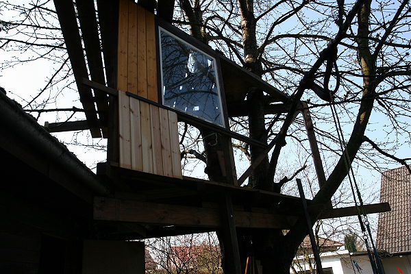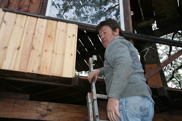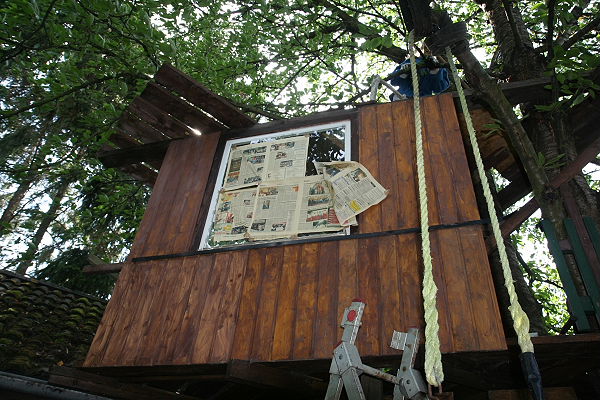 Das Baumhaus wird weitergebaut. >""§ Wir haben schon Pläne gemacht, wie und wann es weitergeht.