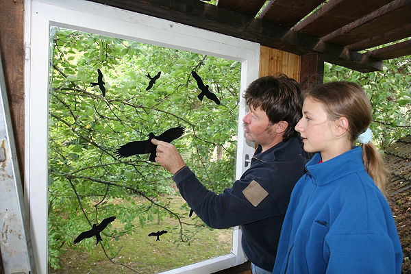Diese wunderten sich, warum so viele Vögel umgekommen waren. Schnell fanden sie die Ursache, die Vögel waren gegen das Baumhausfenster geflogen und da das Fenster so gut geputzt war, konnten sie das Glas nicht erkennen. Das hätten wir anders machen müssen. Meine Freundin und ich klebten sofort das Fenster als provisorische Maßnahme mit Zeitungspapier zu.