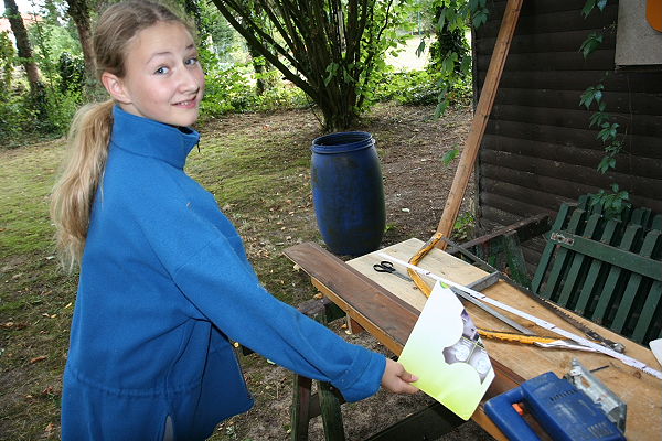Danach habe ich, da Opa die Rostschutzfarbe besorgt hatte, erst einmal einige Sachen gestrichen. Außerdem haben wir neue Bretter angepasst und angenagelt.